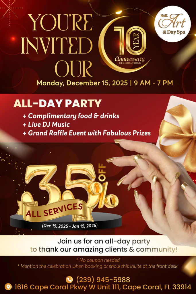 Exceptional beauty experiences begin the moment you walk through our doors in Cape Coral, Florida, at 1616 Cape Coral Pkwy W Unit 111, Cape Coral, FL 33914. At Nail Art & Day Spa, we specialize in combining artistic nail design, spa-grade pedicures, rejuvenating facials, and precision waxing in a calm, elegant space where every detail is designed around your comfort and confidence.